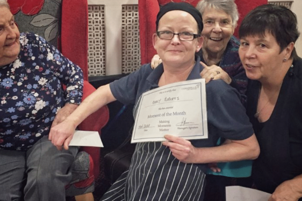 Lynda has been working at Cowbridge Care Home for 19 years and is a very special member of the team! She was nominated this month for all the baking of delicious cakes that she has done in her own time, to help raise funds for our residents activities.